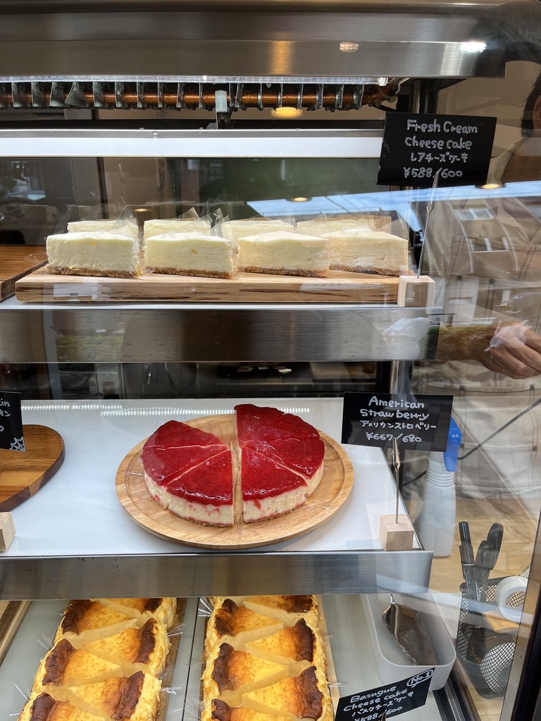 ショーケースには、美味しそうなチーズケーキがいっぱい。