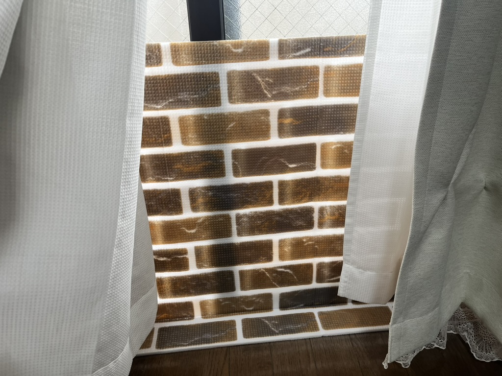 私のようにカーテンが短い場合でも、パネルを置くだけで下からの冷気がシャットアウトされます。